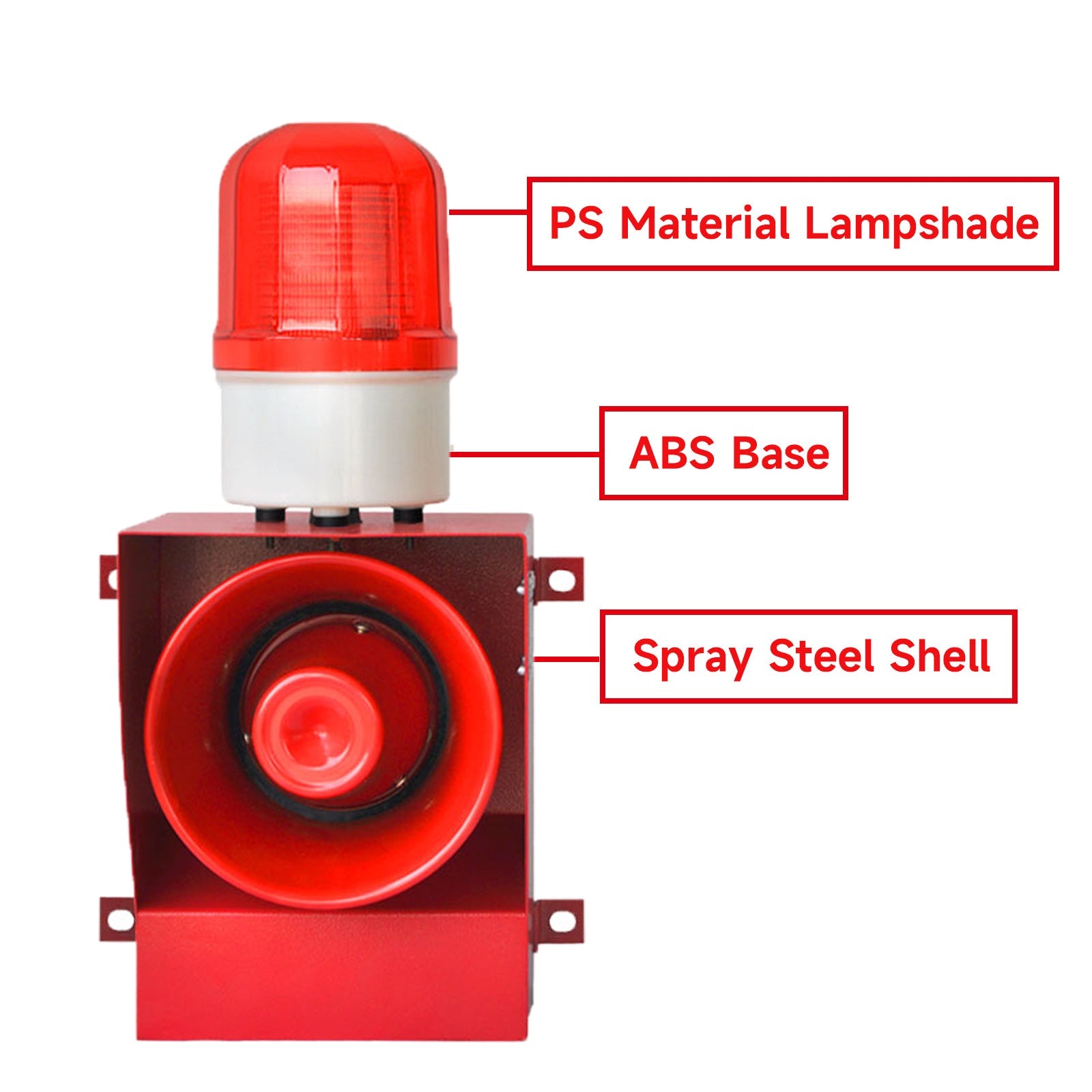 【Operating Principle】Industrial alarm siren, when power on, it will send out siren sound and flashing light alarm, and it will stop when power off. There is no plug, wiring is required, please contact us if you need customized voltage.