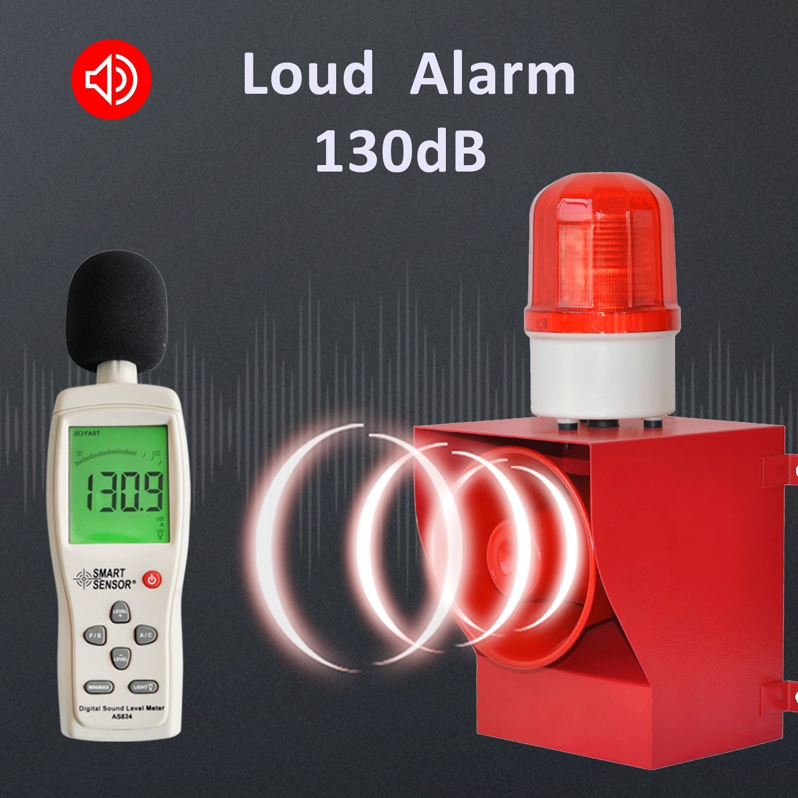 YASONG Alarm Siren Outdoor Industrial LED Siren Strobe IP65 Waterproof 130dB Horn 45W Security Siren for Noisy Environment Emergency Alarm Fire Tornado Alarm SLA-05A