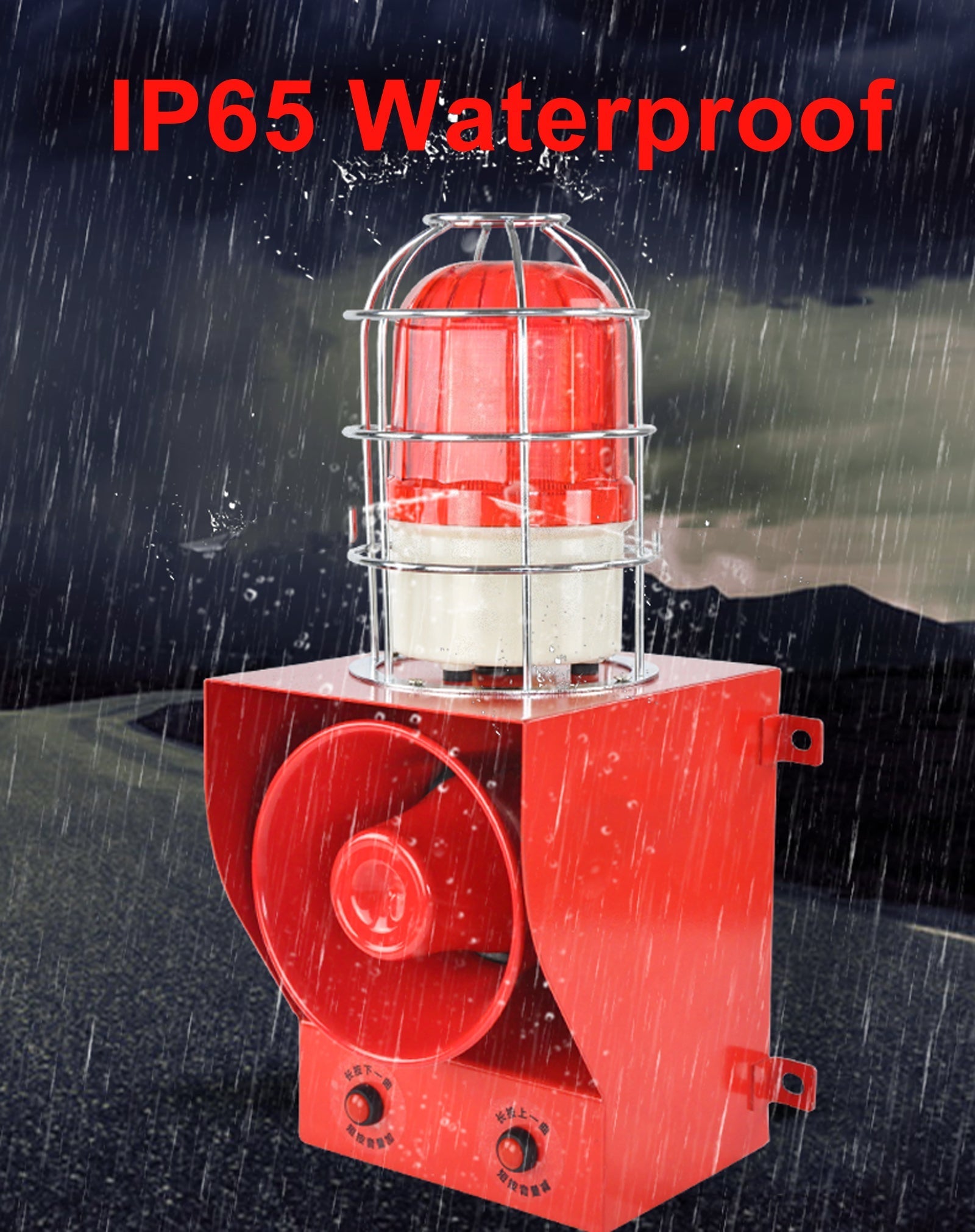 【Product Overview】Industrial sound and light integrated alarm, when power on, it will send out siren sound and flashing light alarm, and it will stop when power off. The siren use cold-rolled steel shell and alloy horn, warning light outside the addition of anti-collision cover, wall-mounted. The higher the power of the alarm, the stronger the penetrating power of the alarm sound.