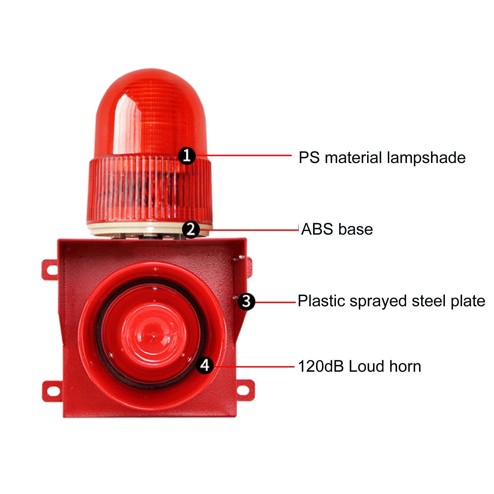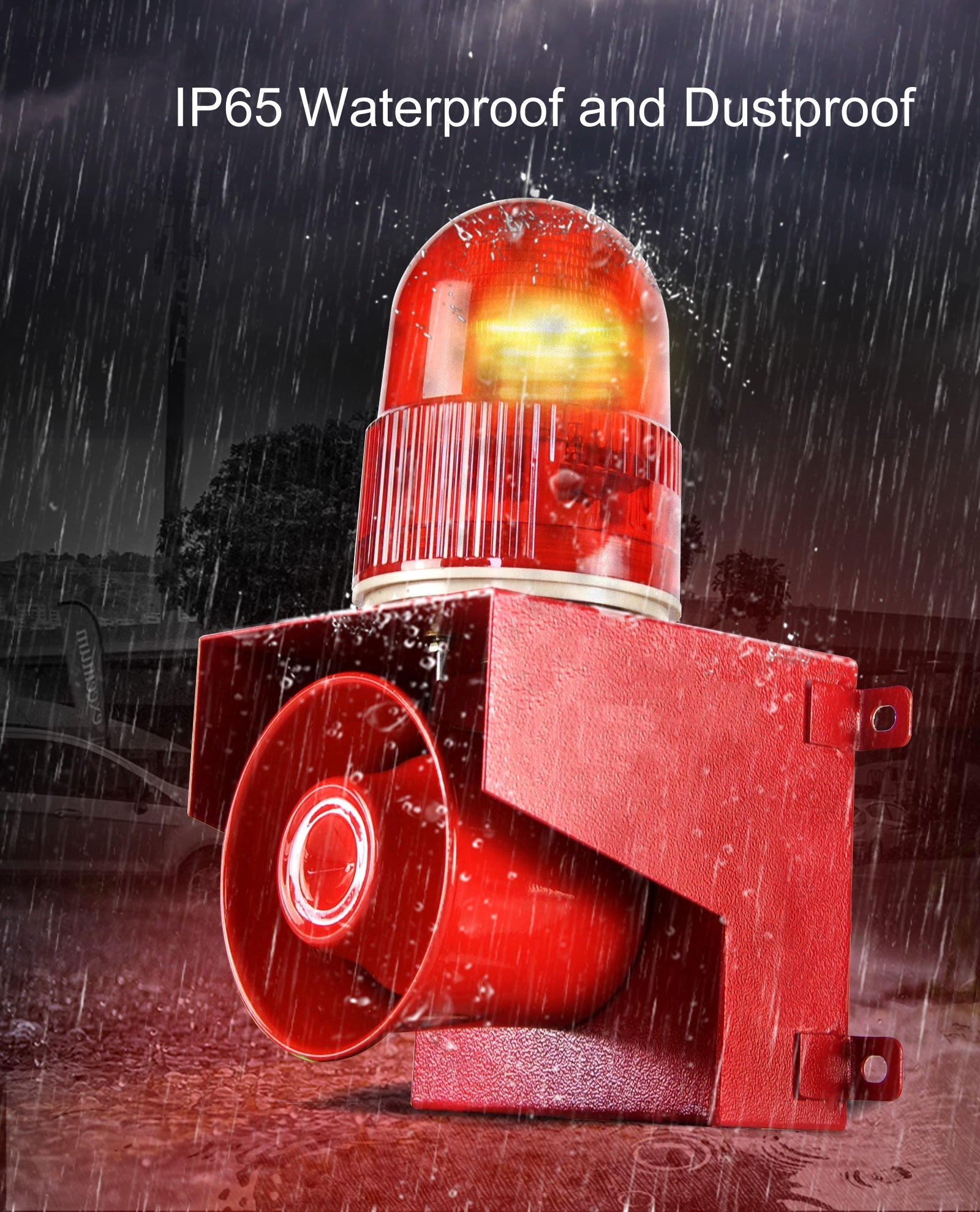 YASONG Siren Alarm with Led Strobe Light 120dB Loud Horn 25W Alarm System for Factories, Docks, Transportation and Ports SLB-01